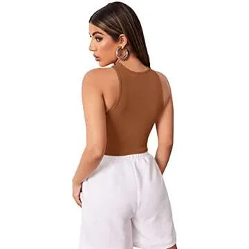 Verdusa Women's Asymmetrical Neck Sleeveless Slim Fitted Ribbed Crop Tank Top Brown M