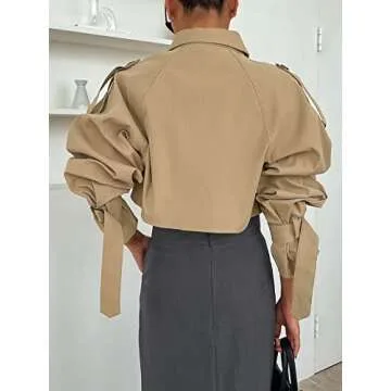 Verdusa Women's Button Front Buckle Raglan Sleeve Crop Jacket Trench Coat Khaki Large