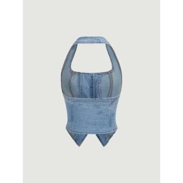 Verdusa Women's Button Front Halter Neck Asymmetrical Denim Crop Top Jean Vest Light Wash Medium