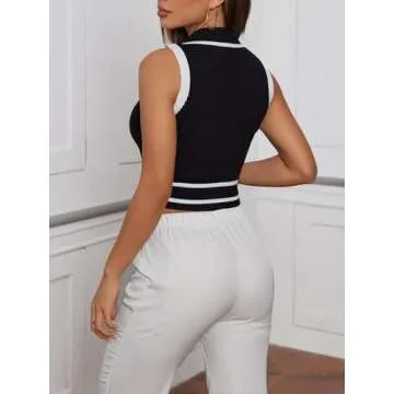 Verdusa Women's Button Front Striped Collar Sleeveless Sweater Vest Knit Top