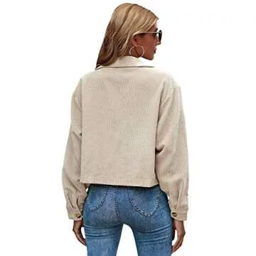Verdusa Women's Button Up Pocket Front Crop Corduroy Jacket Outerwear Apricot M