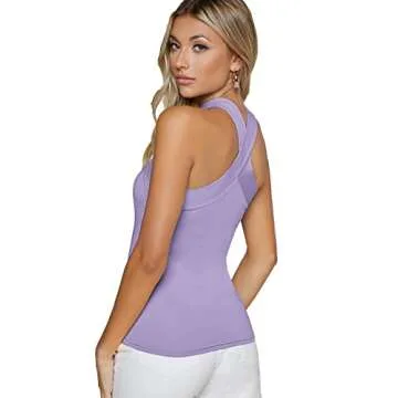 Verdusa Women's Casual Crisscross Sleeveless Form Fitting Tank Halter Top Lilac Purple L