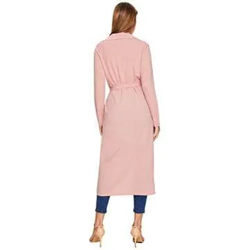 Show moreIntroducing the Verdusa Women's Casual Long Sleeve Lapel Outwear Duster Coat Cardigan, available in a stunning pink hue crafted for the modern woman. This chic duster coat features a flowing design that adds a touch of elegance to any outfit. The lapel collar enhances its stylish silhouette, while the long sleeves provide warmth and comfort, making it the perfect layering piece for various occasions. Whether you’re headed to the office, brunch, or a casual outing, this duster coat will undoubtedly elevate your look.