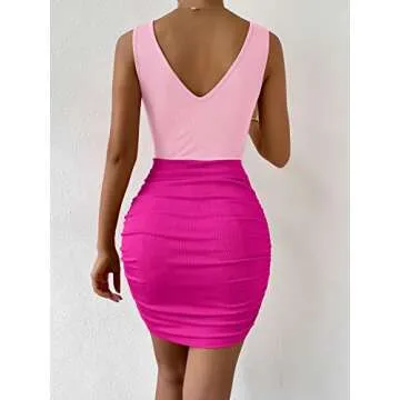 If you're ready to make a statement, the Verdusa Women's Colorblock Twist Cut Out Plunging Neck Sleeveless Bodycon Mini Dress in Hot Pink is your perfect pick! Crafted from a luxurious soft fabric, this dress not only feels amazing against your skin but also highlights your curves in all the right places. Designed with a deep V-neck, twist front, and playful cutouts, this sexy bodycon mini dress demands attention. The vibrant color-block design adds a burst of color to your wardrobe, ensuring...