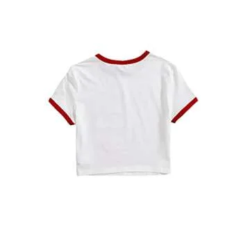 Verdusa Women's Contrast Binding Short Sleeve Slim Fitted Ringer Crop Tee Top White and Red M