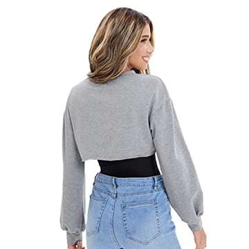 Show more The Verdusa Women's Drop Shoulder Asymmetrical Crop Pullover Sweatshirt is your perfect blend of comfort and chic style. Available in a stunning grey color, this sweatshirt features a contemporary drop shoulder design that adds a relaxed yet trendy look to any outfit. The asymmetrical hemline not only provides a fashionable edge but also offers unique versatility, making it easy to pair with high-waisted jeans, leggings, or skirts. Crafted from a soft and breathable fabric, this pullover sweat top ensures all-day comfort while keeping you stylishly ahead of the game.