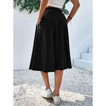 Verdusa Women's Elastic Waist Pocket Side A Line Midi Swing Flared Skirt Black XL
