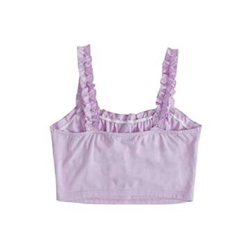 Verdusa Women's Frill Trim Strap Tie Knot Ruched Front Bustier Crop Top Lavender S