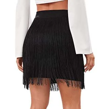 Show moreElevate your wardrobe with the Verdusa Women's Fringe Trim High Waist Short Pencil Bodycon Skirt, an exquisite piece that beautifully combines sophistication with a playful twist. This stylish skirt features a high waist design and a fringe trim that adds a dash of flair, making it an essential addition to your fashion arsenal. Its bodycon silhouette hugs your curves in all the right places, while the above-knee length keeps you looking chic and trendy. Crafted from a soft fabric with a hint of stretch, this skirt ensures comfort without compromising on style, perfect for a day at the office or an evening out on the town.