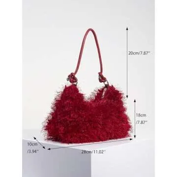 Show moreIntroducing the Verdusa Women's Fuzzy Faux Fur Underarm Bag, a chic and stylish accessory that perfectly combines functionality with a playful touch. Crafted from luxurious faux fur, this shoulder bag provides the perfect blend of comfort and aesthetic appeal. Its unique knotted shoulder strap allows for adjustable carrying options, while the secure zipper closure ensures your belongings are safe and sound. Available in a vibrant red, this bag is not only a fashion statement but also an ideal companion for your daily adventures.