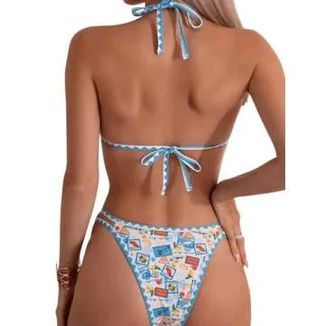 Halter and Tie Back, Removable Padding, Self Tie Swim Top, Strappy Bikini Bottom, 2 Piece Bikini Swimsuit