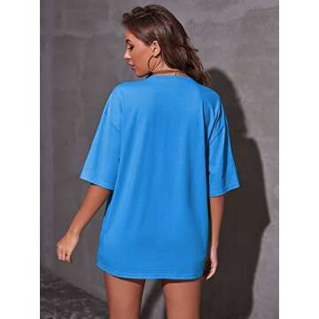 Verdusa Women's Loose Drop Shoulder Tree Miami Letter Graphic Oversized Longline Tee Shirt Tops Blue M