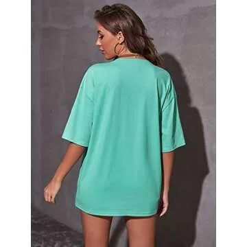 Verdusa Women's Loose Drop Shoulder Tree Miami Letter Graphic Oversized Longline Tee Shirt Tops Mint Green M