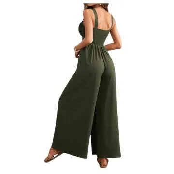 Show more Introducing the ultimate style statement for your wardrobe: a chic and sexy jumpsuit designed to elevate your fashion game effortlessly. This exquisite piece, crafted from high-quality woven fabric, offers a luxurious feel without any stretch, ensuring a tailored fit that flatters your silhouette. The loose, overall jumpsuit features a sleeveless design combined with a captivating low cut, scoop neck that highlights your collarbone and adds a touch of allure. Designed with a high waist and wide leg, it creates a balanced, elongated look that adds a modern twist to any outfit.