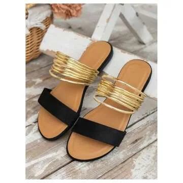 Verdusa Women's Metallic Strappy Flat Sandals - Stylish Casual Comfort