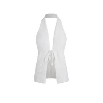 Show moreIntroducing the Verdusa Women's Old Money Halter Tops, a chic and trendy sleeveless vest that redefines fashion with its captivating design. This stunning piece features a deep V-neckline that draws attention and offers an alluring silhouette. Made from luxuriously thick knitted fabric, this halter top provides not only a touch of elegance but also comfort, as it gently hugs your body. The playful bow tie at the front adds a charming twist, ensuring that no two looks are ever the same. Perfect for the daring fashionista, this backless design enhances your style quotient while providing a breezy feel on hot summer days.