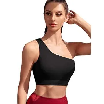 Verdusa Women's One Shoulder Backless Padded Support Yoga Sports Bra Black S