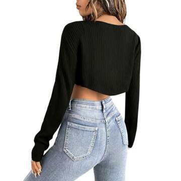 Show moreIntroducing the Verdusa Women's Open Front Long Sleeve Knitted Shrug Crop Cardigan Sweater in classic black, designed for versatility and style. Crafted from a soft ribbed knit fabric that offers just the right amount of stretch, this cardigan is perfect for layering over your favorite outfits. With its chic open back and casual crop cut, it delicately balances comfort and fashion, making it an essential addition to any wardrobe.