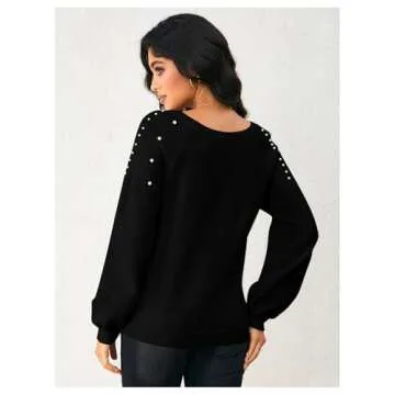 Verdusa Women's Pearl Pullover Sweaters Long Sleeve Round Neck Cute Dressy Casual Knitted Sweater Black Pearls Medium