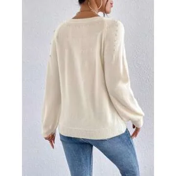 Verdusa Women's Pearls Beaded Raglan Long Sleeve Sweater Pullover Tops Beige Medium