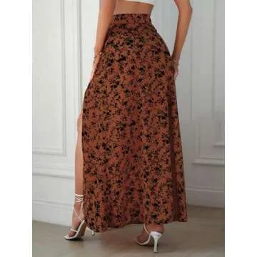 Features: Ditsy Floral Pattern, Long/Full Length, Elastic Waist, Split Thigh, High Waist