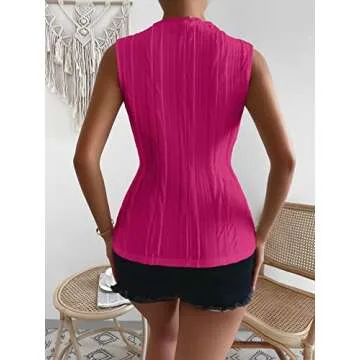 Show moreIntroducing the Verdusa Women's Sleeveless Mock Neck Textured Tank Top in vibrant Hot Pink, designed for the modern woman seeking style and comfort. This chic tank top features a sleeveless design and a stylish mock neck, elevating your casual look effortlessly. Crafted from soft fabric with a touch of stretch, this top ensures you enjoy all-day comfort while retaining a flattering fit. Whether you’re dressing up for the office or heading out for the weekend, this versatile piece seamlessly transitions from day to evening with ease.