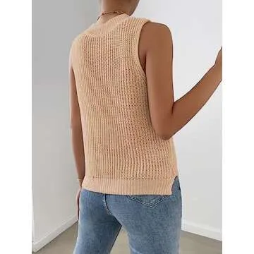 Verdusa Women's Slit Hem Sleeveless Round Neck Knitted Sweater Vest Tank Top Apricot XS