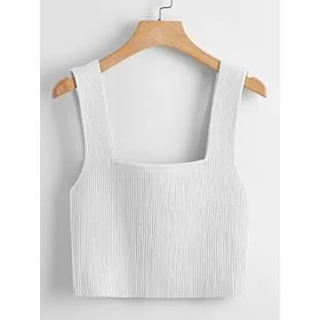 Verdusa Women's Square Neck Sleeveless Solid Rib Knit Crop Top Tank White S