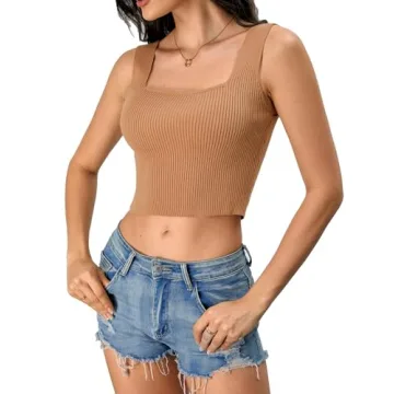 Show more Discover effortless style with the Verdusa Women's Square Neck Sleeveless Solid Ribbed Knit Crop Top Tank in a classic brown hue. This crop top has quickly become a favorite among fashion enthusiasts, and it's no surprise why! Crafted from high-quality ribbed knit fabric, this top promises not just a soft touch but also durability and lasting comfort. With its structured design, the square neckline adds a refined element that elevates any casual or dressy outfit. Priding on a fit that flatters all body types, this top allows you to transition seamlessly from day to evening.