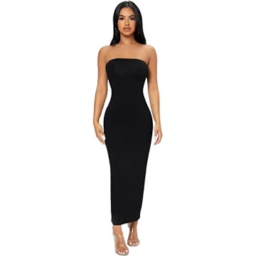 Show moreElevate your wardrobe with the Verdusa Women's Strapless Sleeveless Split Back Long Bodycon Tube Dress in Black Petite XS. This dress is crafted from soft, stretchable fabric that ensures a comfortable yet snug fit, highlighting your curves beautifully. Designed for the modern woman, it features a sleeveless, strapless, and backless design with a daring split hem, making it a standout piece for any occasion. Whether you're heading to a party, business meeting, night club, prom, or an evening out, this dress promises to make you the center of attention.