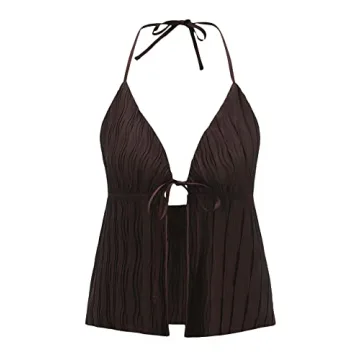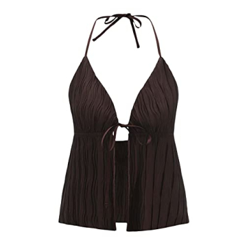 Show moreIntroducing the stunning Verdusa Women's Tie Front Deep V Neck Sleeveless Split Crop Halter Top in a rich chocolate brown, an exquisite addition that blends charm and allure beautifully. Crafted from exceptionally soft fabric, this halter top offers an enticing combination of style and comfort that’s perfect for making a statement. The plunging neckline and open back design creates a daring yet fashionable appeal, making it an ideal choice for summer outings or vibrant nightlife adventures. This piece will not only enhance your wardrobe but also boost your confidence with its elegant design.