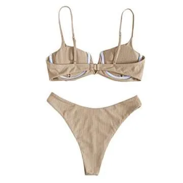 Show moreIntroducing the stunning Verdusa Women's Underwire Bra High Cut Two Piece Bikini Swimsuit in a beautiful apricot hue, designed specifically for the modern woman who wants to feel fabulous both at the beach and by the pool. This eye-catching bathing suit features an underwire bra for optimal support and enhanced lift, giving you a confident silhouette. It showcases a high-cut design that elongates the legs, accentuating your curves, and making you look effortlessly chic. Whether you’re lounging on a sunbed or taking a dip, this swimsuit ensures you will turn heads.