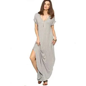 Show moreIntroducing the Verdusa Women's V Neck Side Pockets Split Hem Beach Long Maxi Dress, a stunning piece crafted for comfort and style, perfect for any warm-weather occasion! Made from a premium blend of soft, stretchy jersey knit fabric, this dress provides a loose fit that effortlessly flatters your figure. The elegant V-neckline and short sleeves enhance the overall aesthetic, while the practical side split pockets add functionality to your chic ensemble. With its versatile design, you can easily style this dress for a beach day, casual outing, or even for lounging at home.