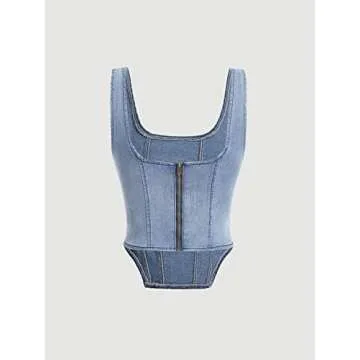 Verdusa Women's Zip Up Back Asymmetrical Scoop Neck Sleeveless Denim Crop Tank Top Blue L