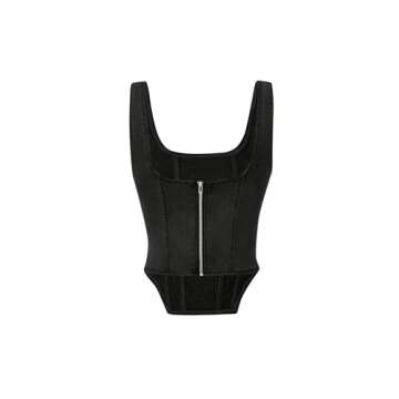 Verdusa Women's Zip Up Back Asymmetrical Scoop Neck Sleeveless Denim Crop Tank Top