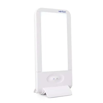 Verilux HappyLight Full-Size - UV-Free Therapy Lamp, Bright White Light with 10,000 Lux, Adjustable Brightness, 2 Interchangeable Lenses, Detachable Stand, and Wall Mountable