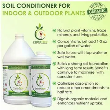 Show moreUnlock the secret to vibrant and thriving plants with VermisTerra Earthworm Casting Tea. This organic worm tea is a powerhouse of nutrients, featuring living enzymes and fermented worm castings that are expertly blended with kelp and various organic soil amendments. Designed to enhance the health of your crops, this soil conditioner concentrate promotes growth by improving nutrient accessibility for your plants. Whether you're cultivating vegetables, flowers, fruits, or trees, this remarkable product will transform your gardening experience.