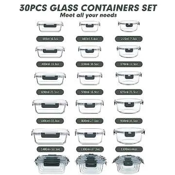 VERONES 30 Pieces Glass Meal Prep Containers Set, Airtight Glass Lunch Containers, Stackable Glass Food Storage Containers with Lids, for Microwave, Oven, Freezer & Dishwasher Friendly,Grey