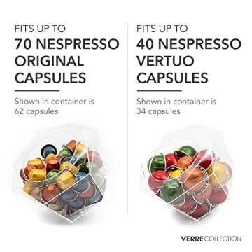 Verre Collection Hexagon Capsule Pod Holder, Compatible for Nespresso Vertuoline, Dolce Gusto, Clear Dispenser, Storage Solution