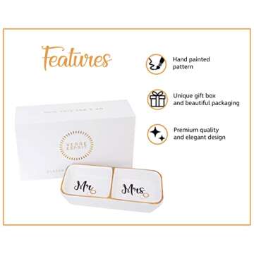 VERRE ESPRIT Wedding Ring Holder - Elegant Mr and Mrs Ceramic Dish