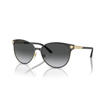 Versace Woman Sunglasses Black/Pale Gold Frame, Grey Gradient Lenses, 57MM