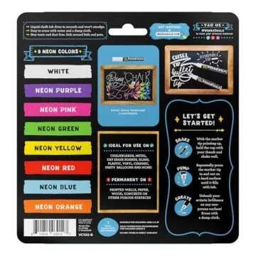 Show more Discover the ultimate tool for creative expression with these bright neon chalk markers from VersaChalk. Perfect for artists, teachers, and crafters alike, these markers boast bold, vibrant colors that breathe life into your visions. With a 5mm reversible tip that includes bold and chisel options, you can achieve astonishingly intricate designs or fill larger areas effortlessly. Ideal for a range of surfaces such as glass, blackboards, whiteboards, and even metal, these markers open up a world of possibilities for weddings, home decor, DIY projects, and more.