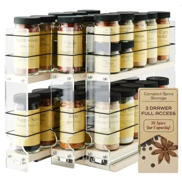 The innovative design features smooth-sliding drawers equipped with chrome steel ball-bearing slides and clear acrylic fronts, making it a breeze to locate your favorite seasoning. These drawers offer full extension capabilities, allowing you to retrieve spices without any hassle. Upgrade your kitchen’s utility with a product that embraces both functionality and elegance.