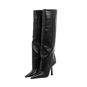 Stylish Vertundy Women's Fold Over Boots - Pointed Toe Stiletto Heels for Any Occasion