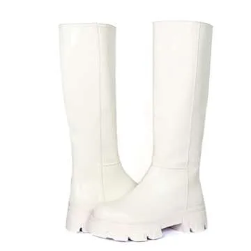 Show more Introducing the exquisite Splicing Knee High Boots for women, designed to elevate your style while providing unparalleled comfort. Crafted with high-grade cowhide leather, these boots are not only lightweight but also incredibly breathable, ensuring your feet stay fresh all day long. The round toe design offers a classic silhouette, perfect for pairing with a variety of outfits. With a 5cm platform height and a unique lug sole, these boots provide excellent grip and stability, making them your go-to choice for any occasion.