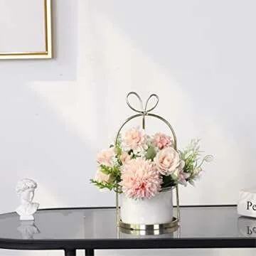 Veryhome Artificial Flowers Chrysanthemum&Hydrangea with Ceramic Vase Fake Flowers Hanging Potted Plants for Wedding Home Office Decoration(Pink)