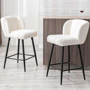 VESCASA Sherpa Counter Barstools with Padded Mid Back, 26 Inches Upholstered Counter Height Bar Stools with Black Metal Legs for Kitchen Island, Set of 4, White