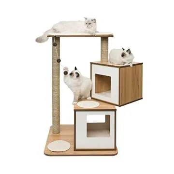 This cat tower offers a modern aesthetic that replaces unsightly carpeted surfaces with stylish materials, enhancing your home’s decor while appealing to your feline's needs.