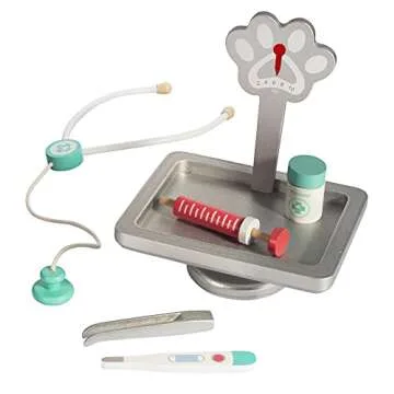 Vet Center Pretend Pet Hospital Playset- Wooden Animal Interactive Medical Checkup Set with Toy Cat, X-Ray Cards Stethoscope & Veterinarian Medical Accessories, Fun Doctor Role Play Gift for Kids