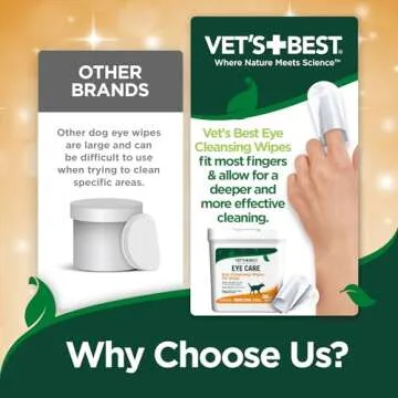 Compared to other pet eye cleaning products, Vet’s Best Eye Cleansing Wipes stand out due to their unique blend of natural ingredients and user-friendly design. While some competitors use harsh chemicals, Vet’s Best prioritizes your dog's health through natural formulations that are both effective in cleaning and gentle on sensitive skin. The fingertip design enhances precision, making it easier to clean around the eyes without risk of poking or hurting your pet. Additionally, with their Made in the USA commitment, you can trust the quality of each wipe.